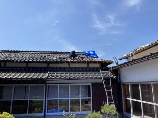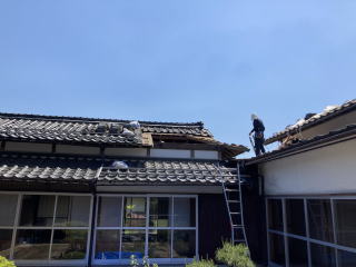 令和6年5月10日撮影一旦、瓦を取り除いて、屋根の下地修理を行います。 |