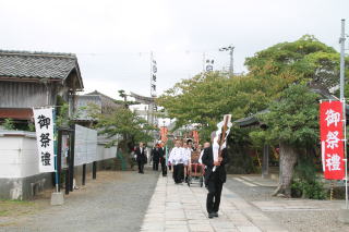 令和4年10月10日撮影無事に御旅行列は神社に還り、還幸祭を行いました。御神輿から御本殿に御神体が還られました。 今年は、とにもかくにも行列が出せて良かったと感じました。 来年は感染症が収まって、さらに賑やかに例祭ができることを願っています。 |